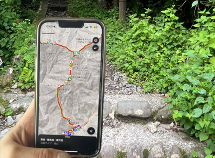 「①行きたい山を決める→②地図をダウンロード→③登山開始時にスタートボタンを押す」と、スマホのMAPのように、自分が歩いている道を地図上で示してくれます。